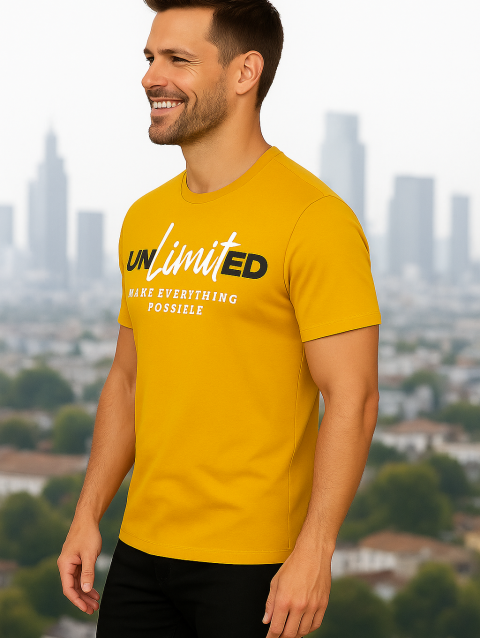 Men round neck regular fit 100% premium cotton Bio-washed mustard yellow t shirt.