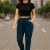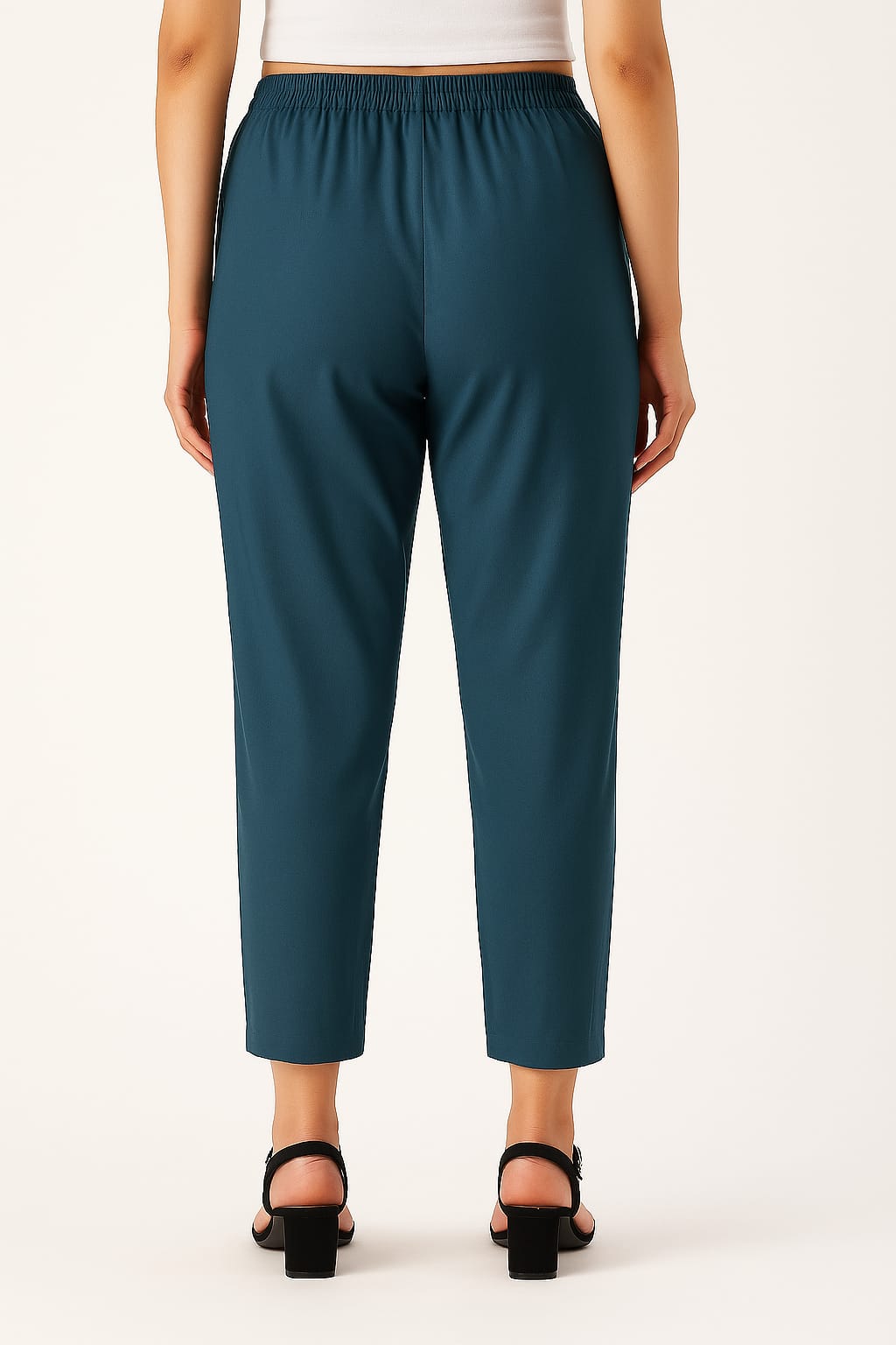 A mid-rise elastic waistband and clean seem detailing.