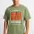 Men round neck oversized cotton blend olive green DTF print t shirt.