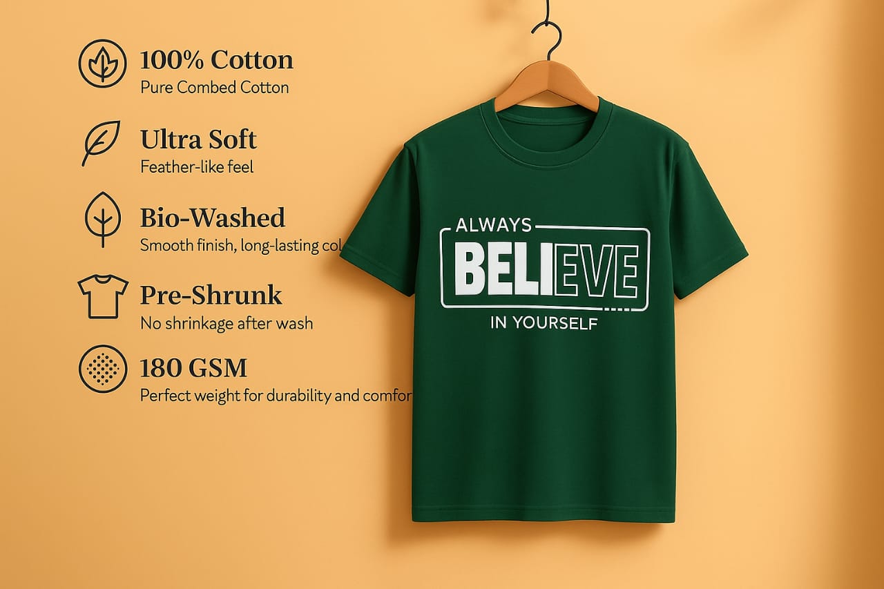 Be the first to review “Men round neck regular fit 100% cotton bottle green front print t shirt.” Cancel reply