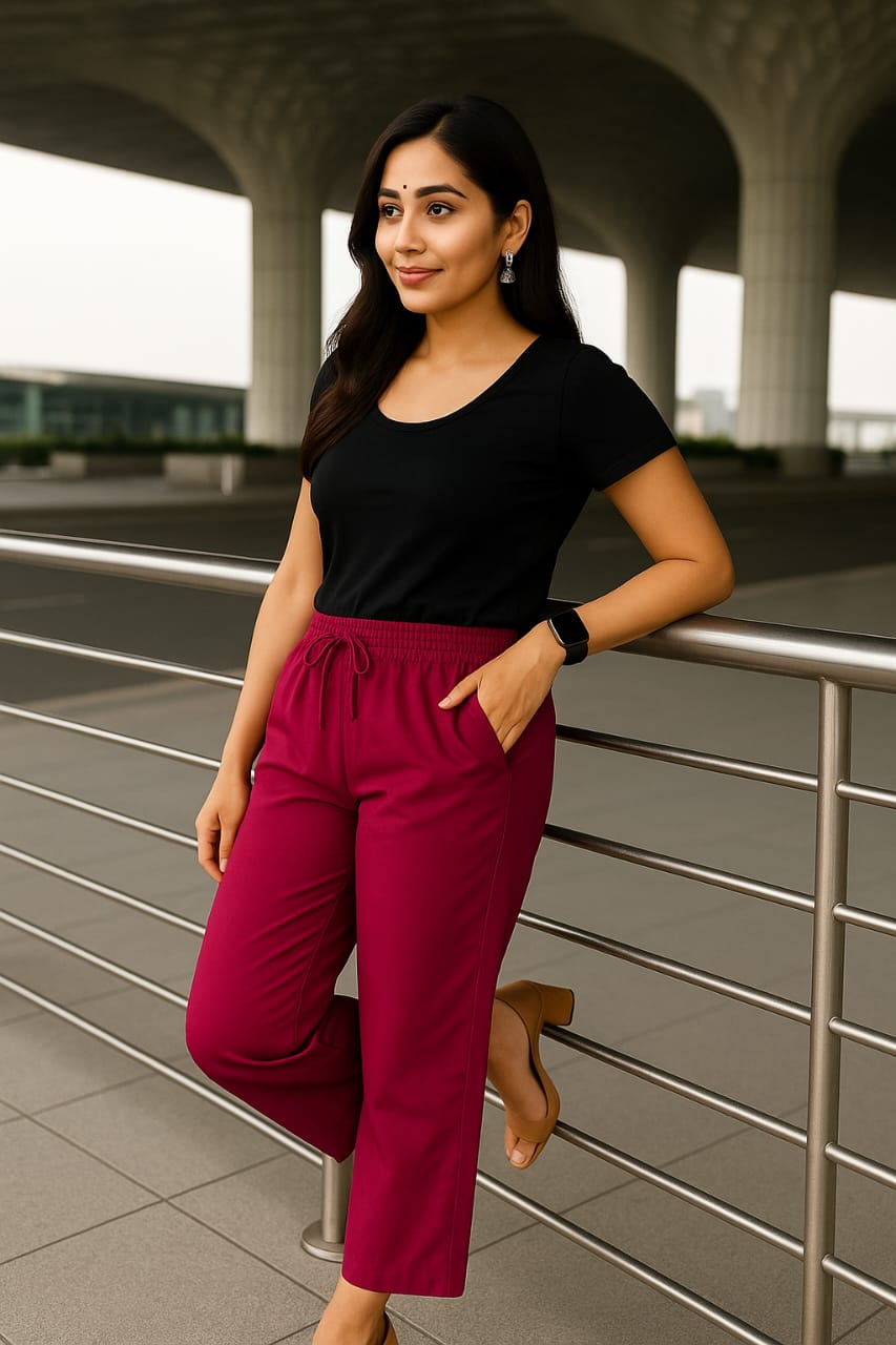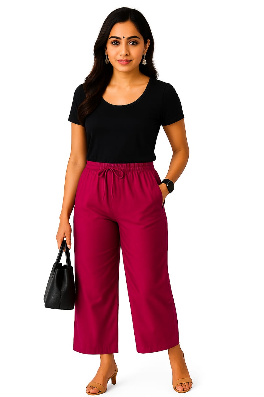 Rani pink plain plazo with side pocket.