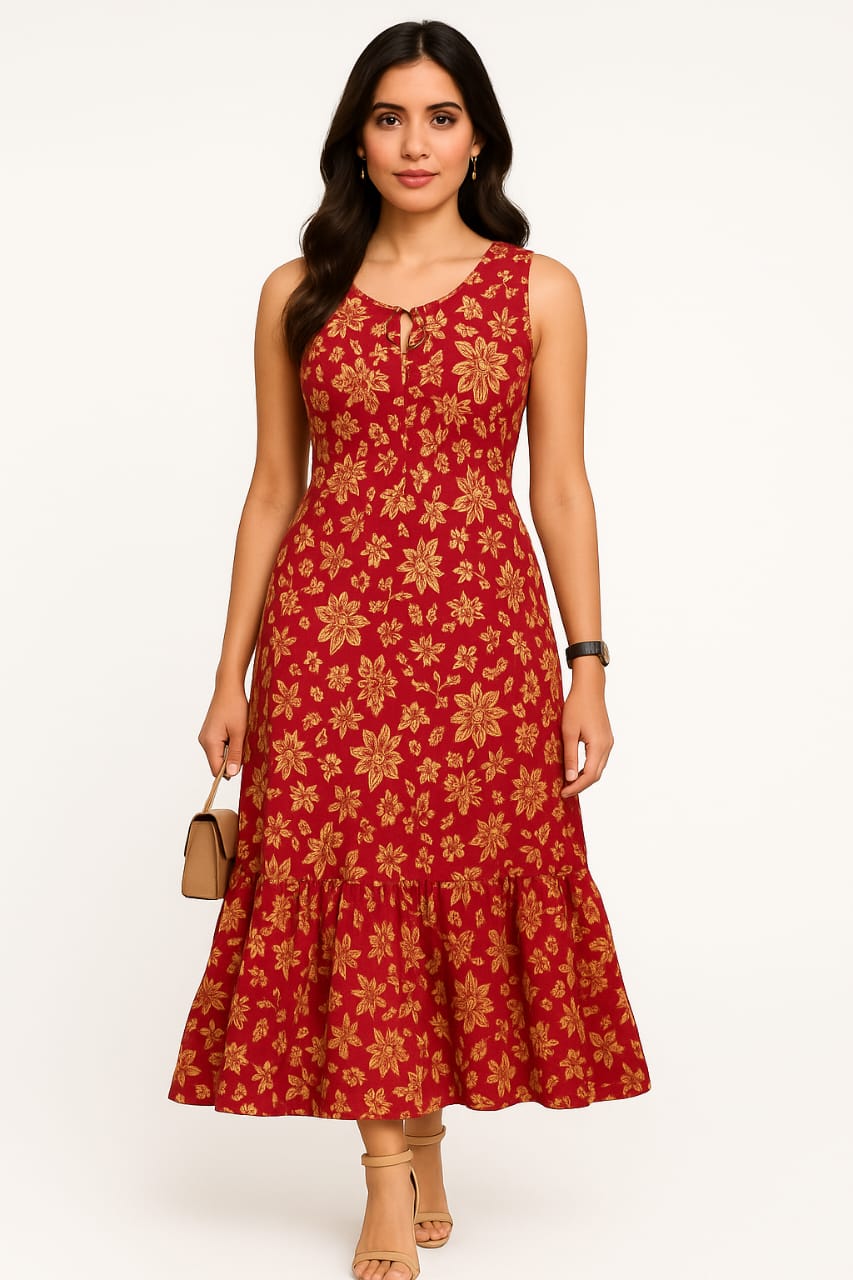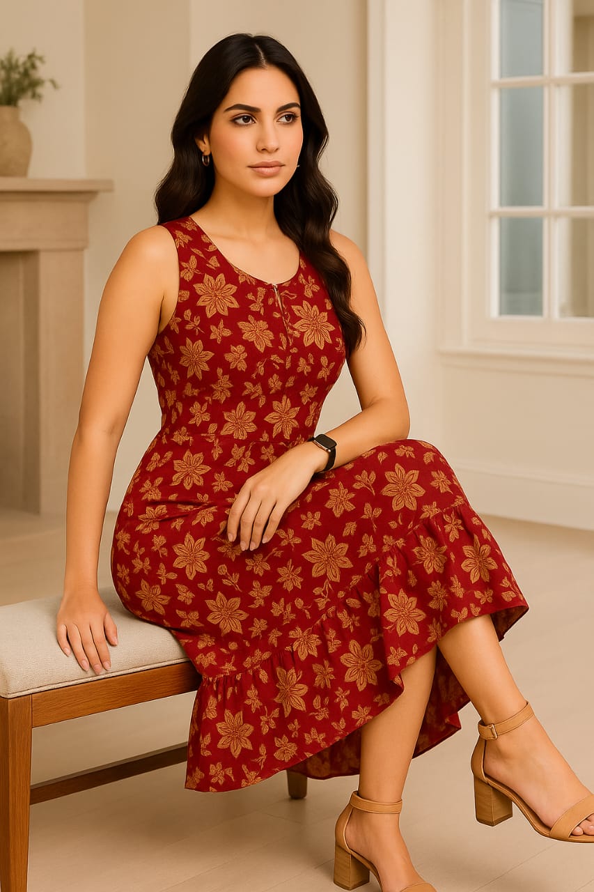 Reyon Print Long Ghera Sleeve less Kurti