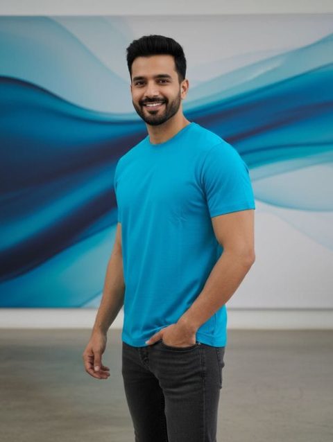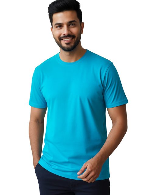 Mint Blue Solid colour 100% cotton Regular fit t-shirt