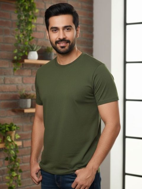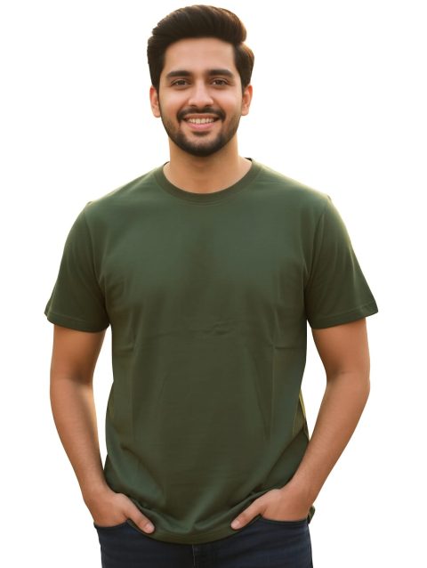 Olive Green solid colour 100% cotton regular fit t shirt.